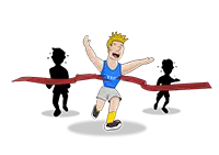 האיש בתמונה בדיוק חצה את קו הסיום. מה המשפט המתאים ביותר לתאר זאת: